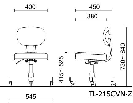 商品名: TL-215CVN-Z キャスター脚 ガス上下 作業用チェア ビニールレザー
