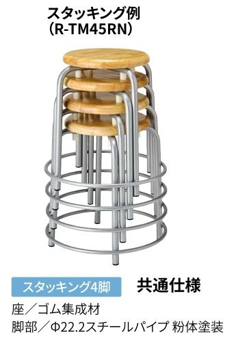商品名: R-TM45RN 座面ゴム集成材 丸スツール 塗装脚
