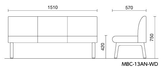 商品名: MBC-13AN-WD(W1510) 背付きロビーベンチ 座カラー選択