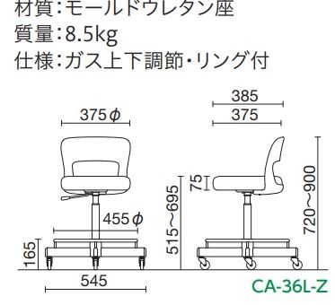商品名: 高作業用チェア CA-36L-Z ガス上下調整