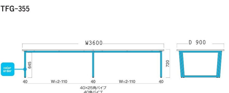 商品名: TFGー355 (7) ~W3600×Ⅾ900 天板色4色 脚部色11色